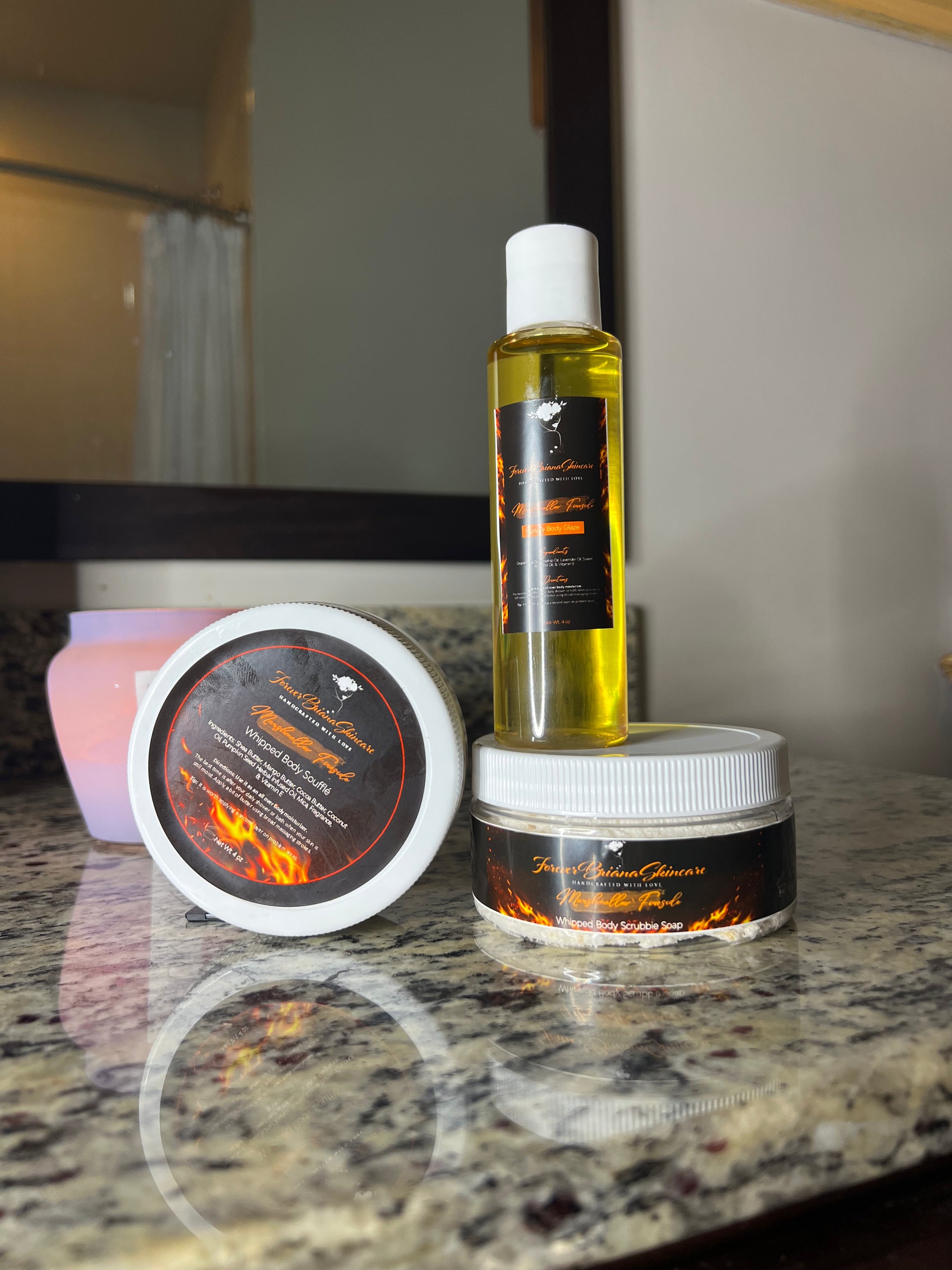 Snuggle up with our Marshmallow Fireside scent! Infused with warm and cozy toasted marshmallow notes and a hint of smokiness, this is our most complex scent that is sure to ignite your senses! It's super warm yet sweet, and you'll be so impressed you won't be able to smolder down. Flicker away with this one-of-a-kind aroma!